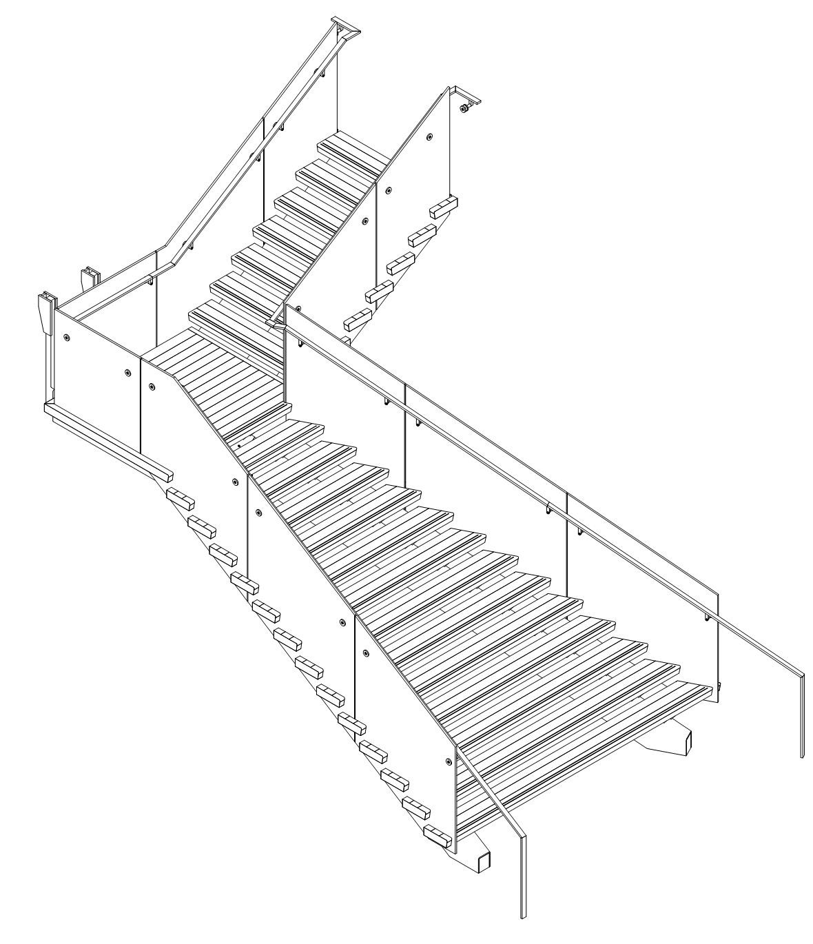 Tapering feature stair for a Manhattan law firm with white oak treads and glass guardrail .