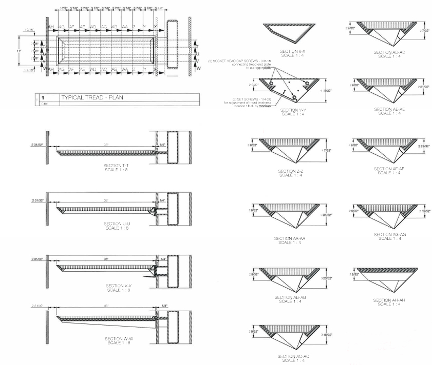 Cantilevered stair with glass guard rail and faceted glass treads.